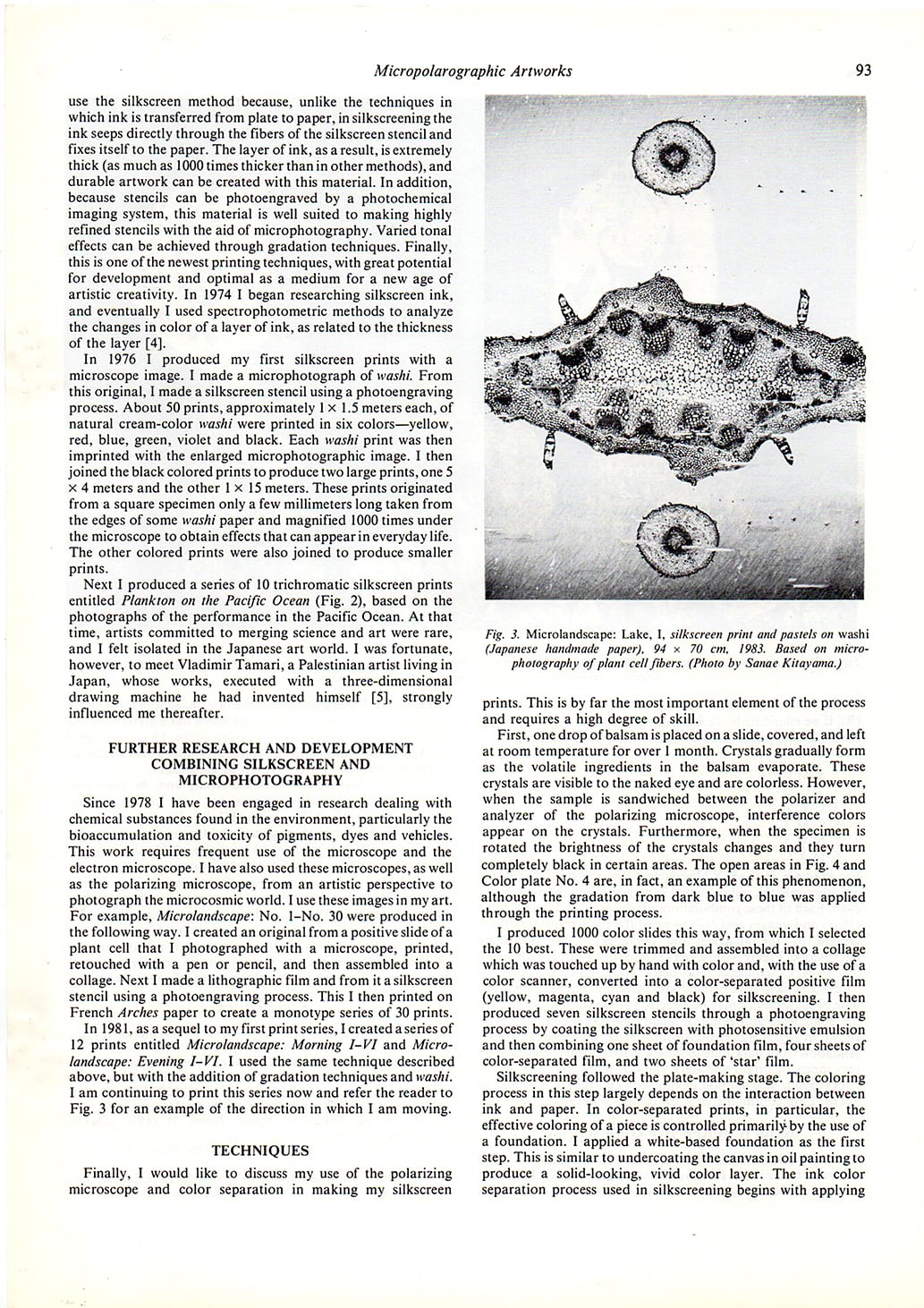 1984年、科学と芸術の融合をテーマとする米MIT出版局の権威ある学術誌『LEONARDO』に日本人芸術家として初掲載される快挙を達成。その後も欧州各国の国際展で評価され、2016年には米国「ニコンスモールワールド」にて世界トップ9に選出。