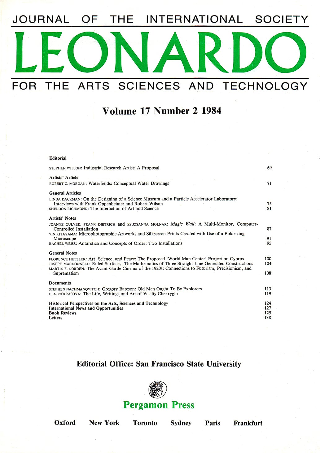 - 米国マサチューセッツ工科大学が出版する、芸術・科学・技術の融合を扱う国際的学術誌に日本人芸術家として初掲載。