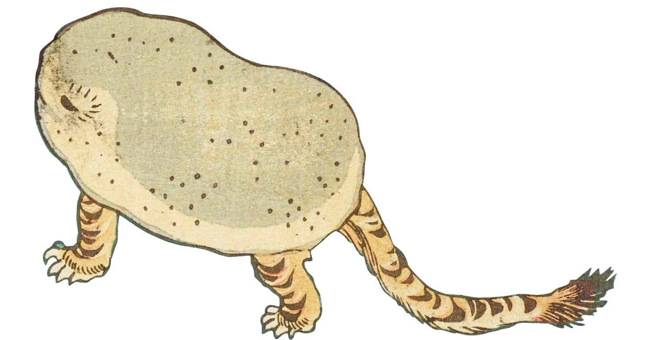 太田記念美術館の公式twitterアカウントや、noteアカウントに使われている謎のアイコン。 これは何なの?石?生き物?と思われる方が多いので、改めて紹介したいと思います。 実はこのアイコンは、歌川芳員「東海道五十三次内 大磯」(※現在展示しておりません)という作品に描かれた、謎のキャラクターを切り抜いたもの。大きな石に虎の手足と尻尾、目や口と思われるものもついており、おそらく生き物なのでしょう。 名前は「虎子石」とあります。 突然現れた虎子石に、周囲の人々がびっくりしていますが、虎子石は涼やかな表情。特に危害はなさそうです。右側の女性は少し笑っていますね。