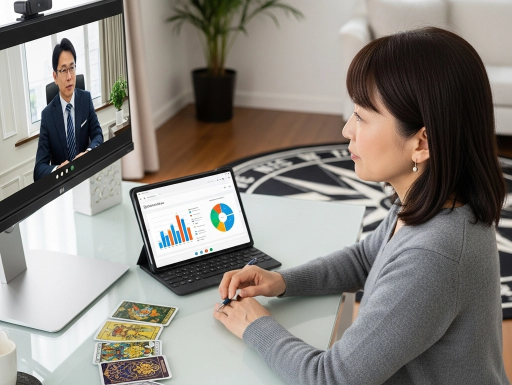 明確になった課題や問いに対し、タロットを用いて深層的な洞察や新たな視点を引き出します。これは未来を予言するものではなく、お客様自身の内なる声や、状況が持つ多面的な可能性を探るための対話です。 - 直感的洞察とデータ分析の統合ワーク: